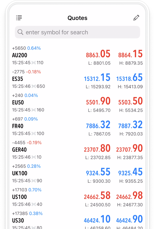 Track global benchmarks like US500, NAS100 & UK100 in one place