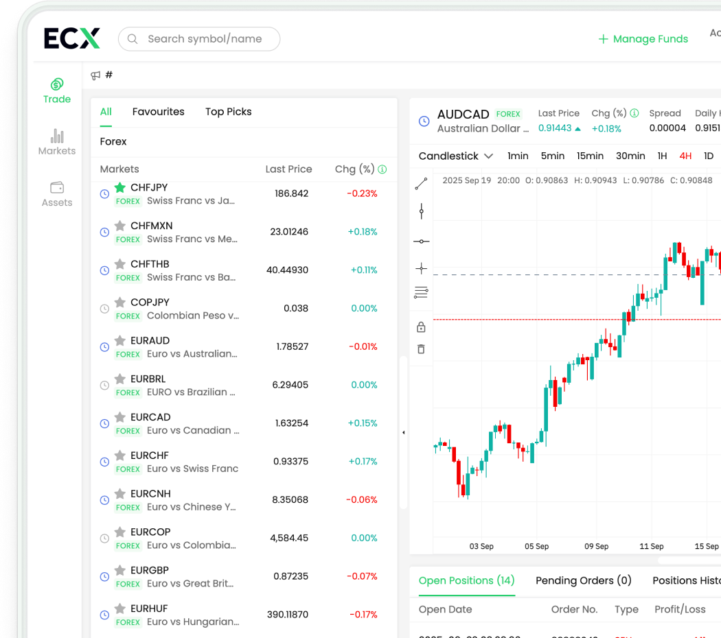 Open your ECX account, fund it securely, and access the stock markets instantly from any of our platforms.